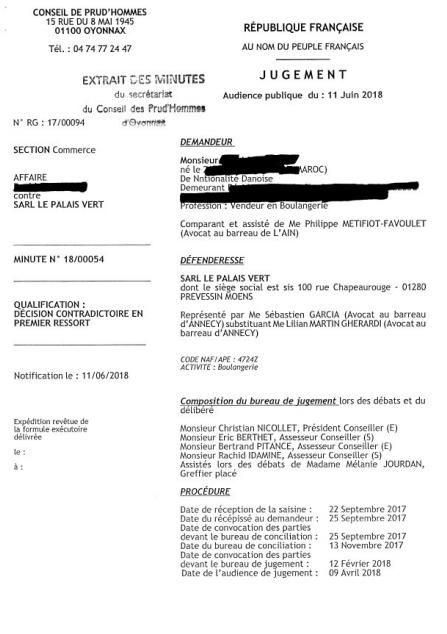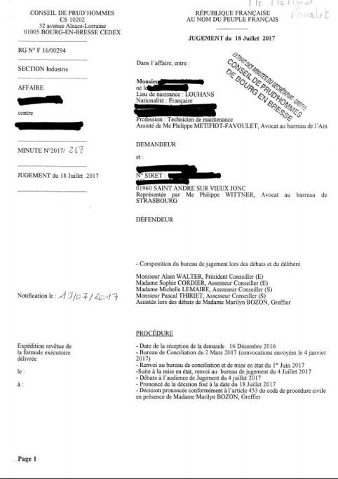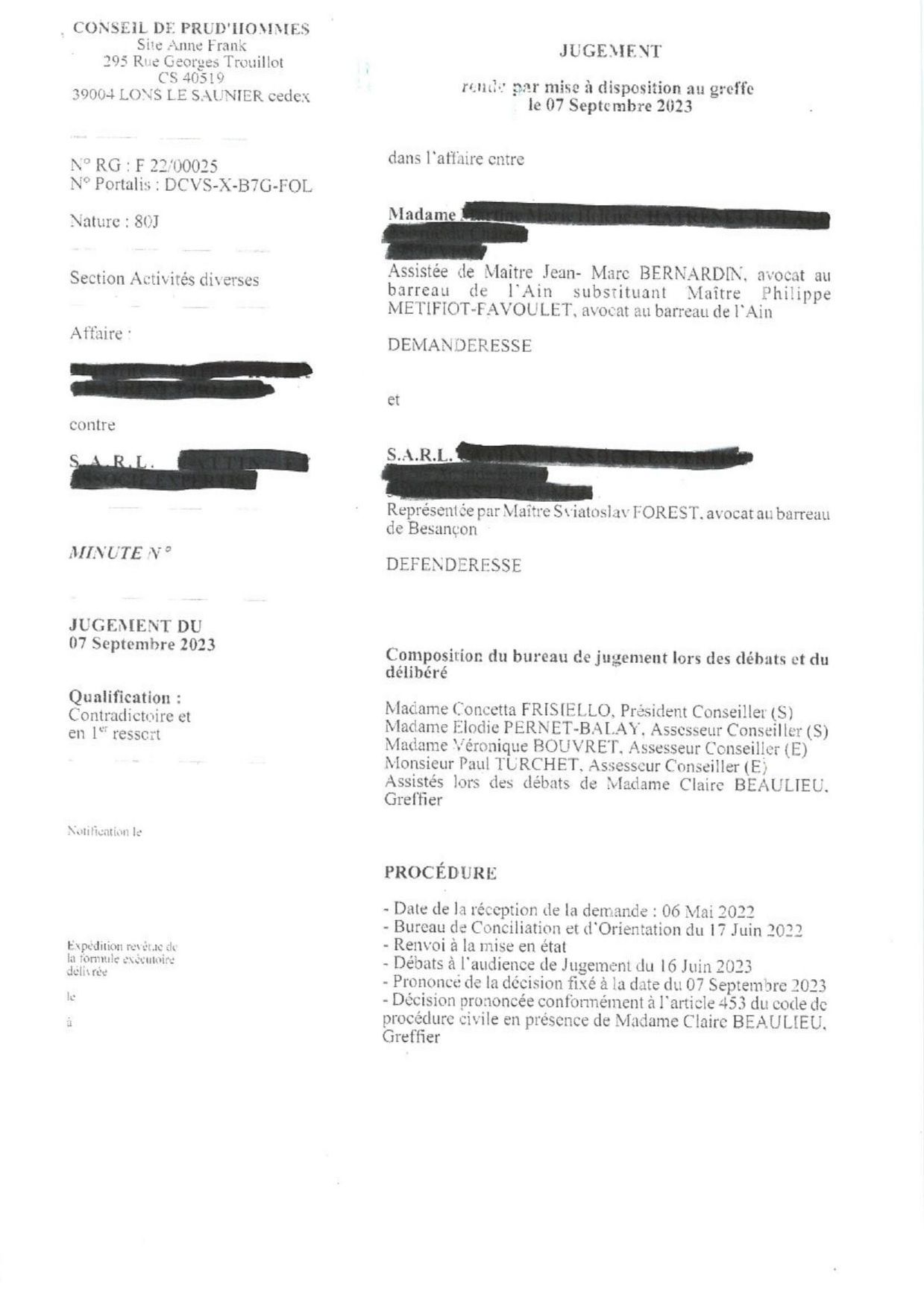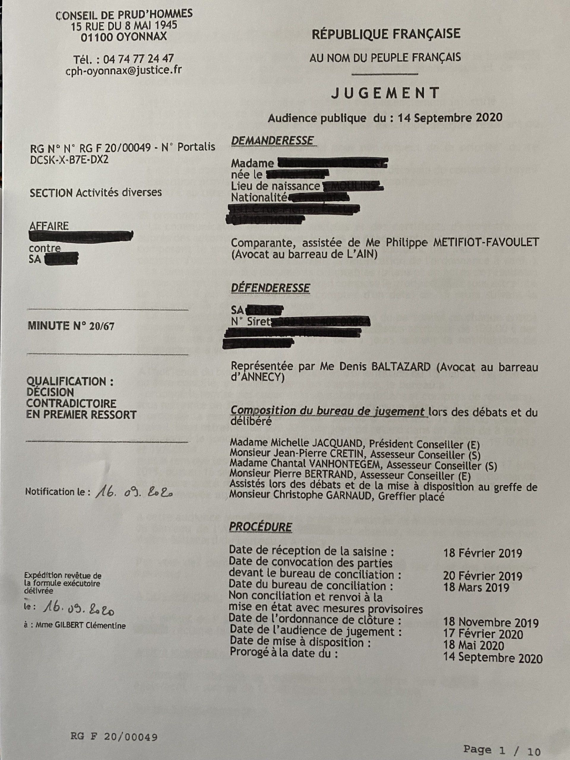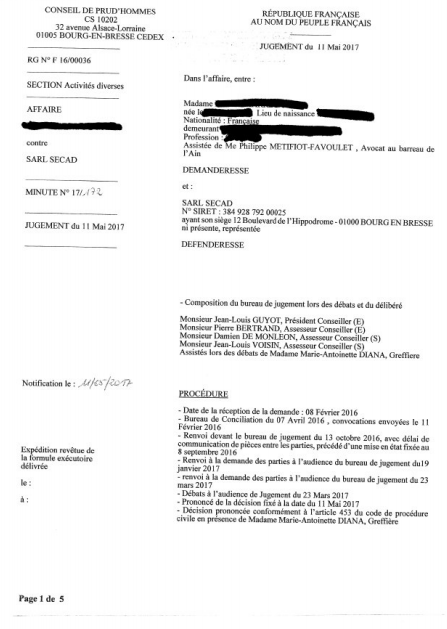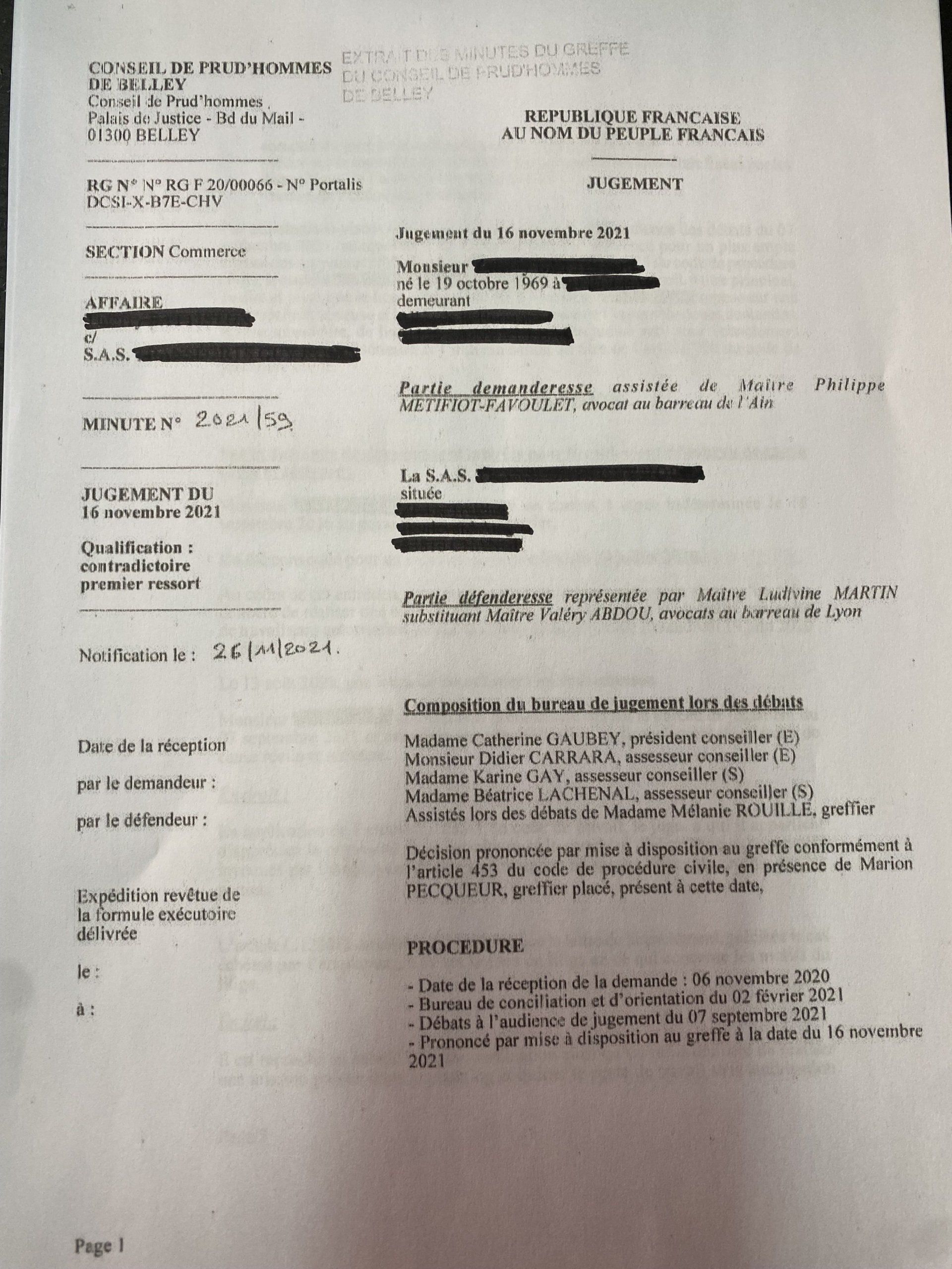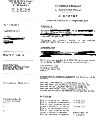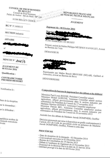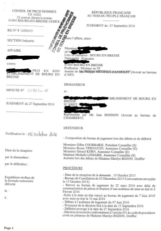 Cour de Prud'hommes de Bourg-en-Bresse.