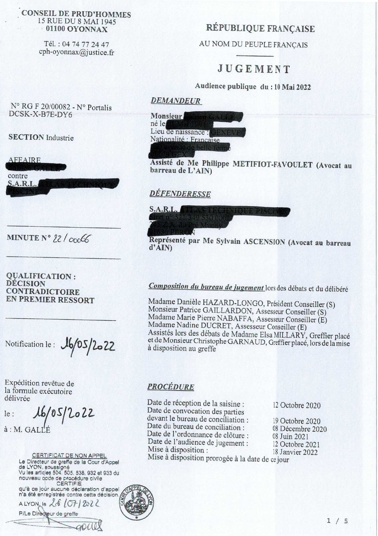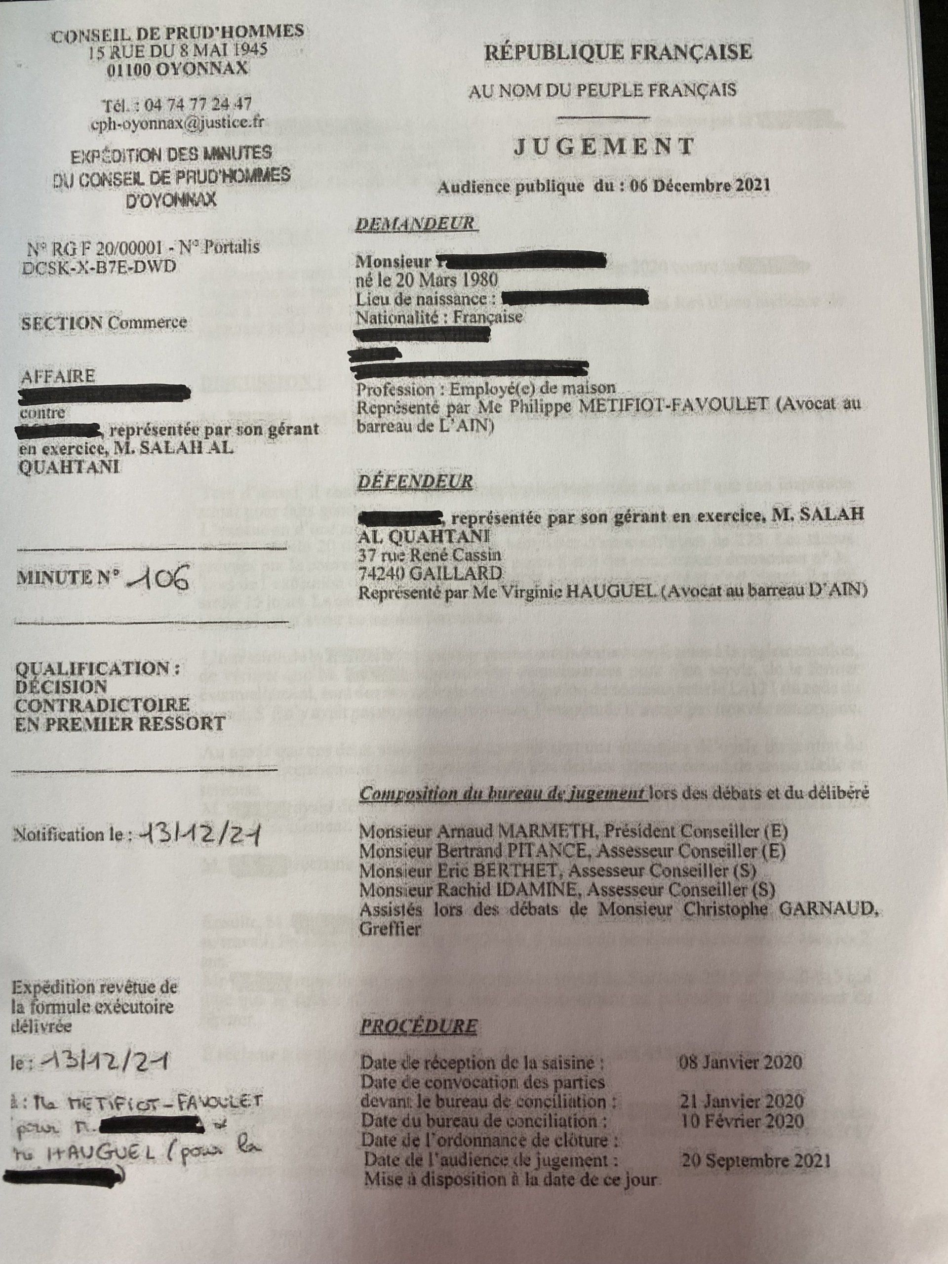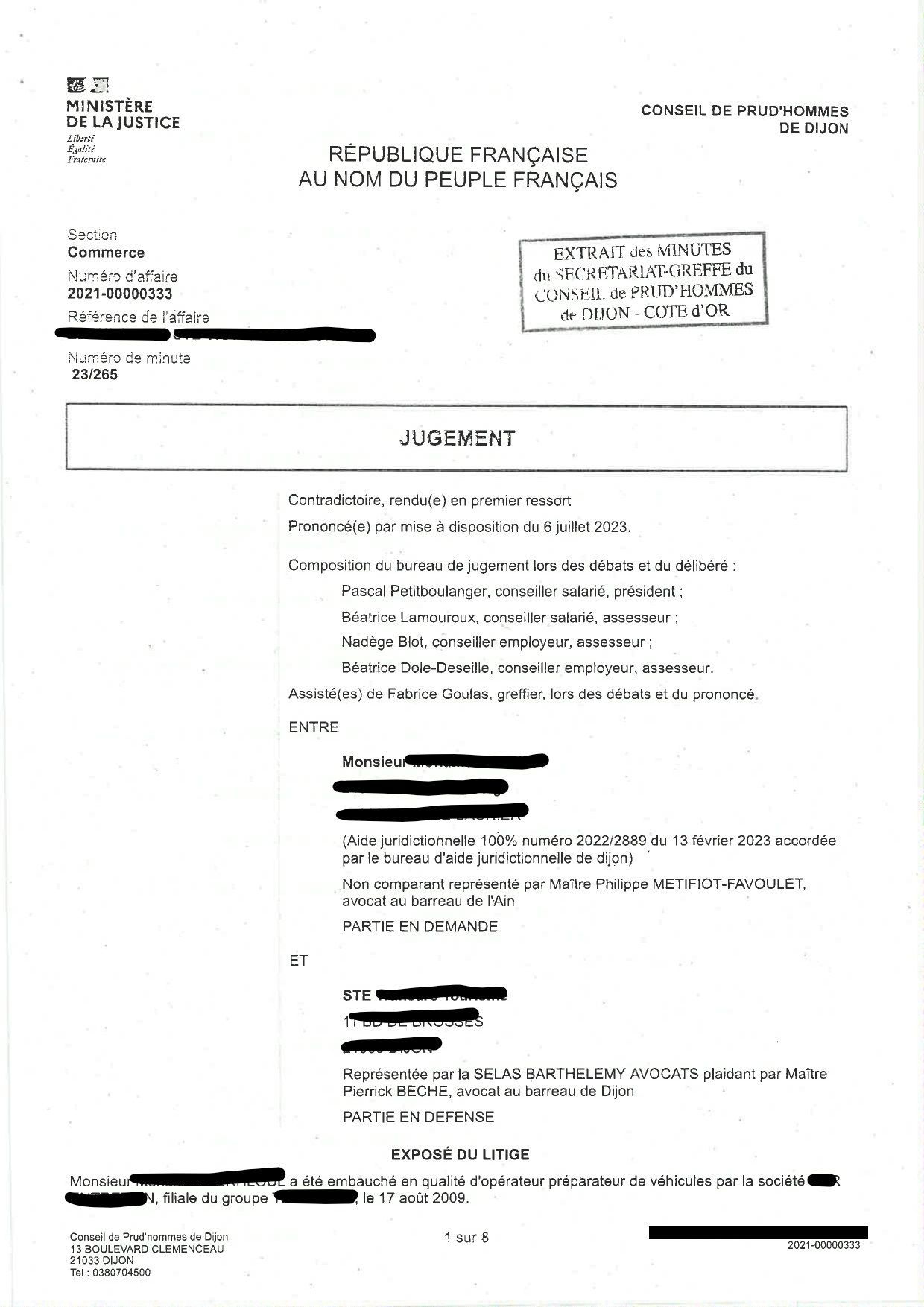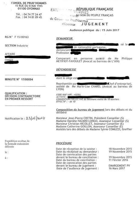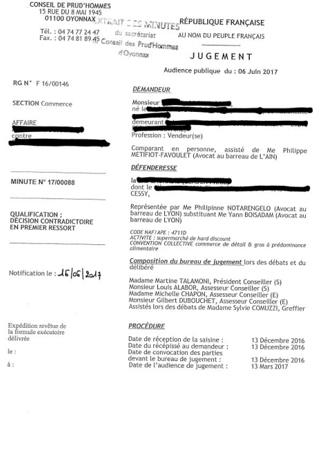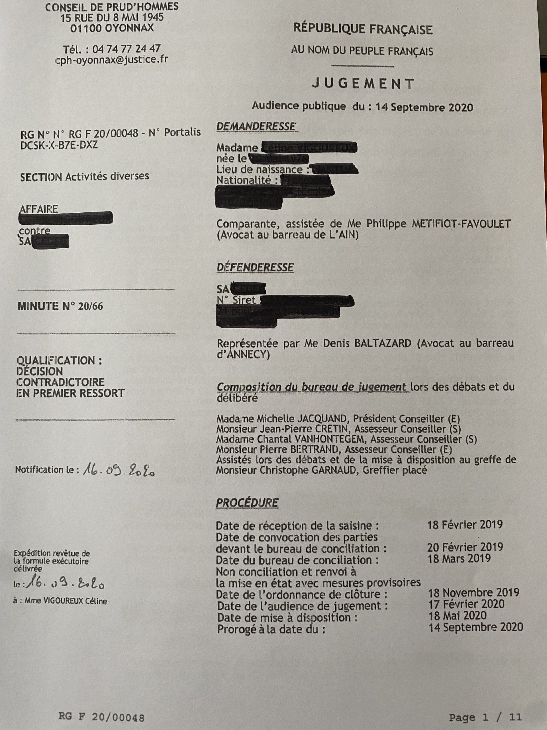 Cour de Prud'hommes de Bourg-en-Bresse.